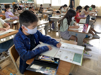 自分の考えを早く言いたくて仕方がないようです。図も活用しながら、何倍になるのかを考えます。