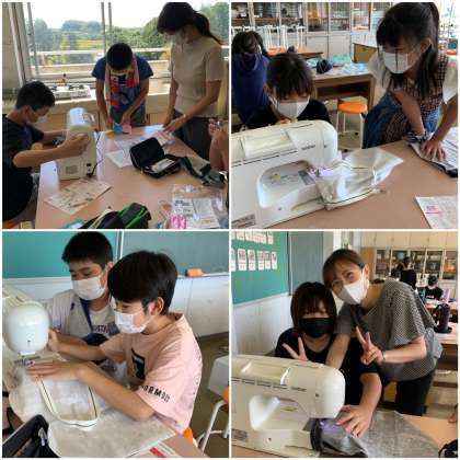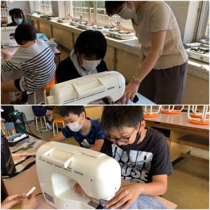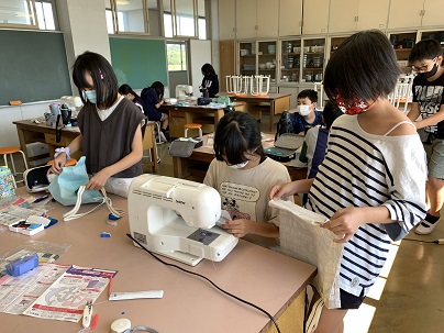 先週に引き続き、今週もトートバッグ作りに取り組んでいます。ラインテープを縫い付けたら、バッグの底部分にマチを縫ったり、アイロンシートで飾りを作ったりしています。いよいよ完成が近づいてきました。