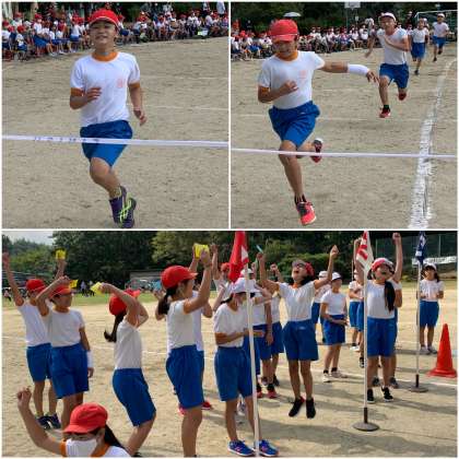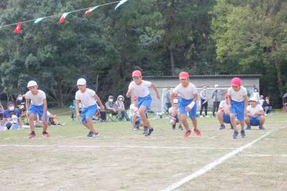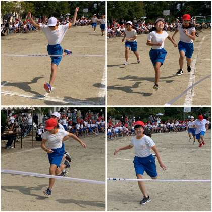 小学校最後の運動会。徒競走にも力が入ります。全力を尽くす姿は立派です。