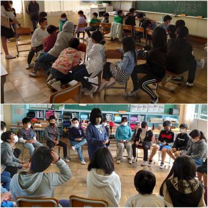 緊急事態宣言などもあり、久しぶりのカラー班遊びを行いました。今日は強風のため、教室内でのカラー班遊びとなりました。6年生のみなさんがしっかりと下級生をリードして、楽しくゲームなどをすることができました。