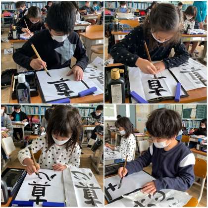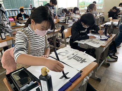 尾張教育研究会書写作品コンクールに向けて、練習に励んでいます。