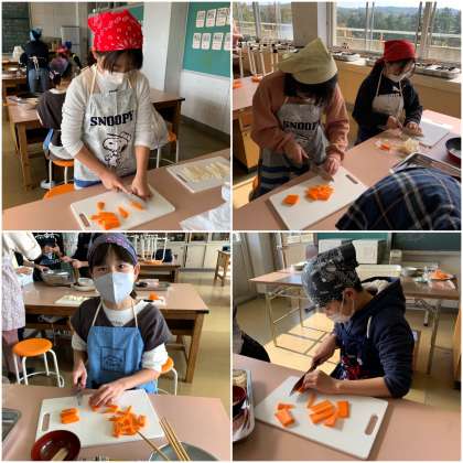 6年生が、待ちに待った調理実習を行いました。昨年から、コロナの影響で調理実習を行うことができませんでした。ようやく初めての調理実習を行うことができ、みんなとてもうれしそうです。服装や実習中の約束もしっかりと意識して、実習に臨むことができました。頑張って調理した野菜のベーコン巻きの味は、格別だったことでしょう!
