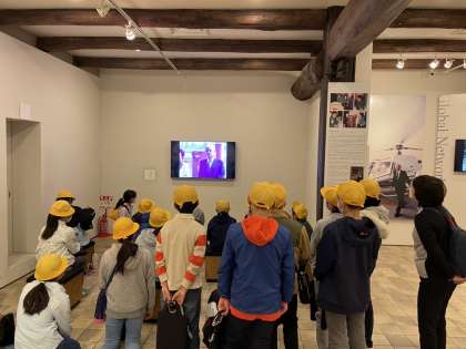 味の館に到着しました。盛田昭夫さんについてのビデオなどの資料を見せていただいています。