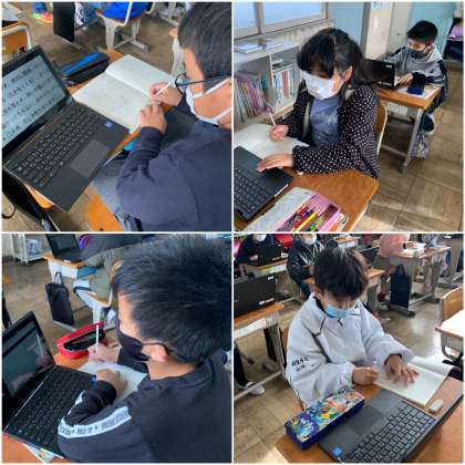 慣用句の学習です。慣用句には、体や心、動物や植物に関する言葉を含むものがたくさんあります。「エンジンがかかる」のようにカタカナが入ったものもあります。まずはどんな慣用句があるのか調べています。