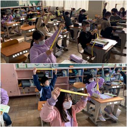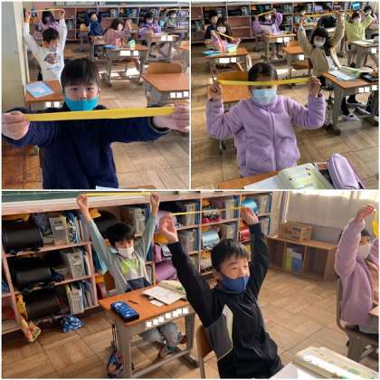 1mの2分の1や3分の1の長さを紙テープで作ってみんなで見せています。このような長さは何と言ったらいいのでしょうか?