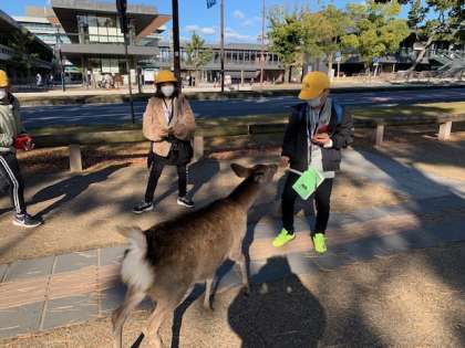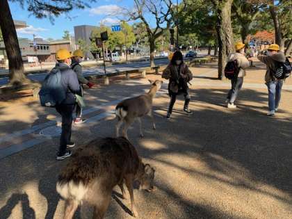 鹿が集まってきました。鹿の勢いにビックリ!