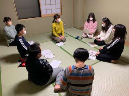 おやすみなさい! 公開日 2021/12/02 更新日 2021/12/02 6 年 班長会を行っています。班ごとに健康観察と反省会の報告をしています。みんな楽しく過ごすことができたようです。しおりをしっかりと見て、行動をするなど反省を生かして、明日も頑張りましょう! 今日の疲れがとれるように、しっかりと休みましょう。それでは、おやすみなさい!