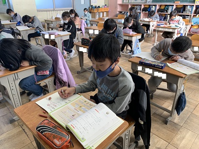 分数の学習もいよいよ終わりです。最後の「学びのまとめ」に取り組んでいます。たくさんの問題に頑張って取り組む3年生のみなさんです。
