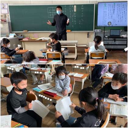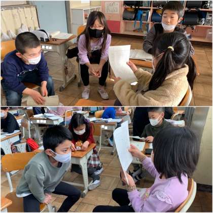 完成したお話を班で発表しました。お話を聞いた友だちは、お話の感想を伝えます。ちょっと照れながら発表している子もいましたが、みんな頑張って発表しました。
