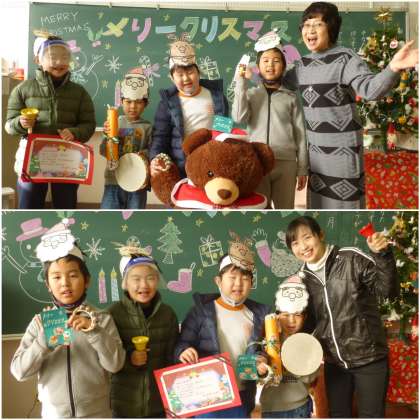 すずらん1組のクリスマスパーティーの様子です。ハンドベルなどを使って演奏やゲームをして、楽しい時間を過ごしました。最後は先生と一緒に記念写真。みんないい笑顔だね!