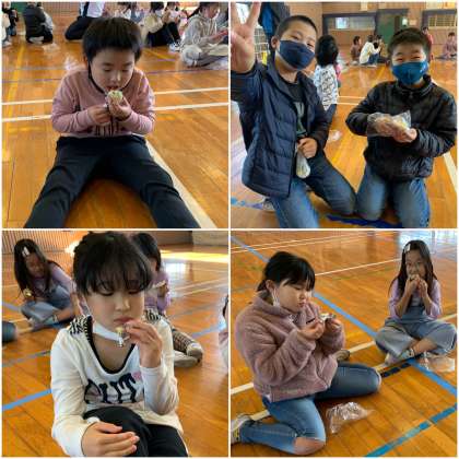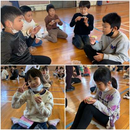 おにまんじゅうの出来具合もバッチリです!おいしいおにまんじゅうができ、大満足の2年生のみなさんです!