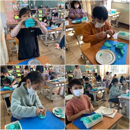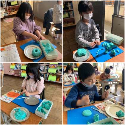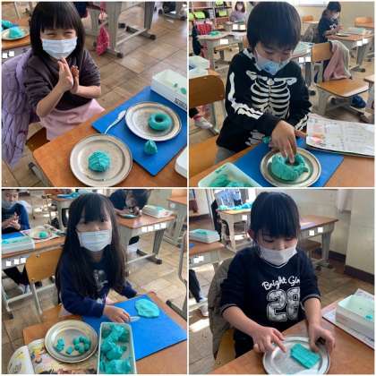 好きな食べ物を粘土を使って作っています。みんなとても楽しそうです。