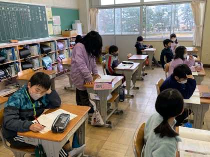 しっかり復習! 公開日 2022/03/22 更新日 2022/03/22 3 年 ?3月22日(火) 3年生の学習も今週で終わりです。今日も算数では、復習問題に取り組んでいます。しっかり取り組んで、4年生の学習に備えましょう!