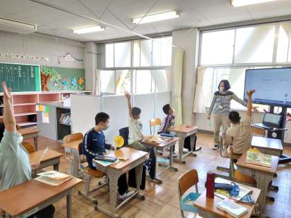 友だちが考えた大きさの角も、みんな楽しそうに作っています。