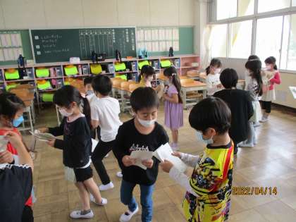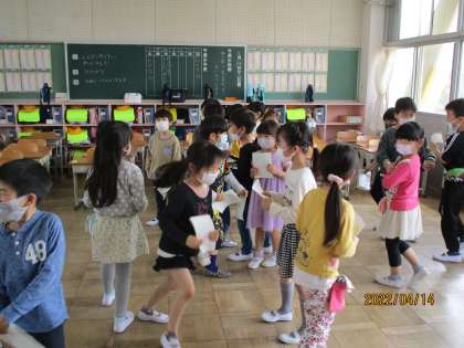 昨日作った名刺を使って名刺交換ゲームをしました。
