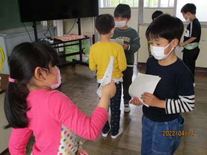 じゃんけんをして勝った方が先に「自分の名前」「好きなもの」を発表します。