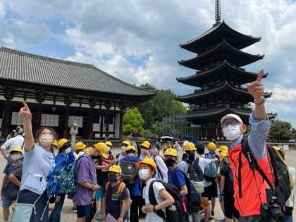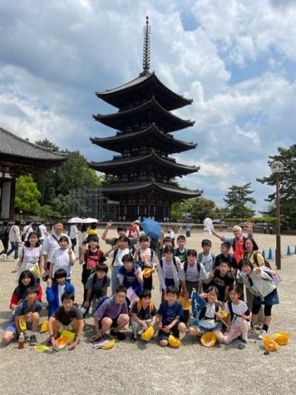 興福寺に到着しました! 五重塔の前で記念撮影です! 予定より早く進んでいます!