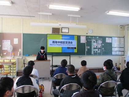南陵中校区の特別支援学級高学年の児童が南陵中学校に集まり、