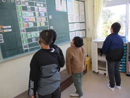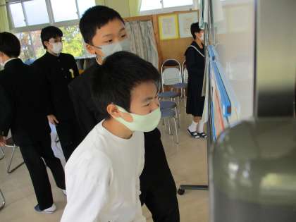 交流会の後は、みんな教室内の掲示物に興味津々!