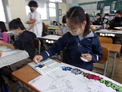 伝える工夫 公開日 2022/11/17 更新日 2022/11/17 5 年 11月17日(木) 5年生が取り組んでいる人権ポスターの完成が近づいています。 どんなメッセージを、どんな伝え方をするか? 伝え方の工夫は、さまざまですね。