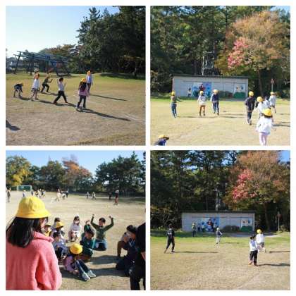 白組班の遊びは、「スポーツ鬼ごっこ」と「だるまさんがころんだ」「氷おに」でした。スポーツ鬼ごっこは初めてする遊びでしたが、ルールがわかると楽しく遊べました。だるまさんがころんだと氷おには知っている遊びでしたので、すぐに楽しんでできました。