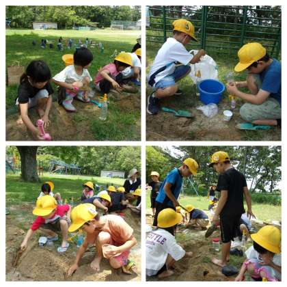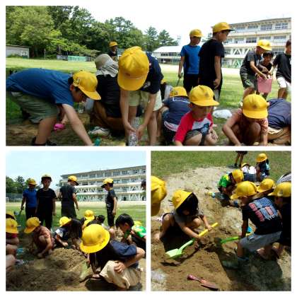 すなやつちとなかよし! 公開日 2023/06/29 更新日 2023/06/29 1 年 6月29日(木) 図工の「すなやつちとなかよし」の学習では、みんなで楽しく砂遊びをしました。あなを掘ったり、水を入れたり、それぞれ好きなことをして楽しみました。終わりの時間になっても「まだやりたい」と言っている子がたくさんいました。