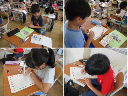 2年 やさい日記まとめ 公開日 2023/07/11 更新日 2023/07/11 2 年 7月11日(火) いままで書いてきた「やさい日記」をまとめて、本にしました。野菜を育てるために頑張ったことや、育てていて嬉しかったこと、やさいへのお手紙などを書きました。大事に育ててきたやさいへの思いがこもった一冊ができました。教室にありますので、懇談会の際にぜひご覧ください。