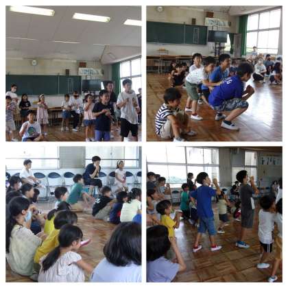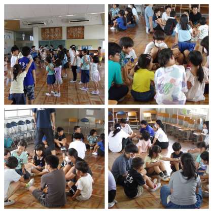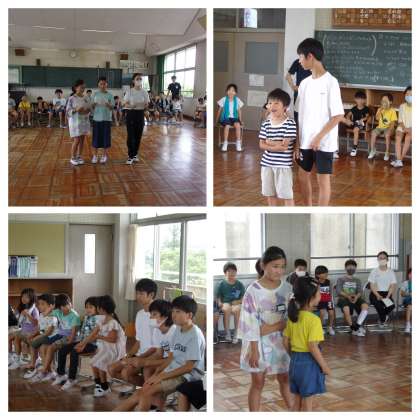 1・6年 ペア遊び 公開日 2023/07/19 更新日 2023/07/19 全学年 7月19日(水) 1・6年生は、1学期のお楽しみでペア遊びをしました。6年生が計画を立てて、運営をしてくれました。 「なんでもバスケット」「だるまさんの1日」「じゃんけんれっしゃ」「ばくだんゲーム」の4つの遊びをしました。 みんな笑顔で楽しい時間を過ごすことができました。