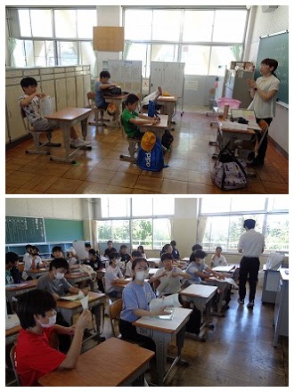 3時間目に学活がありました。各クラスで、1学期を振り返るお話がありました。また、学習で使ったプリントを返す作業をしている学級もありました。最後に、通知表を渡してもらい、みんな大事そうに中身を見ていました。お家に帰ったら、どんな1学期間だったか話題にしてもらえるとよいかなと思います。