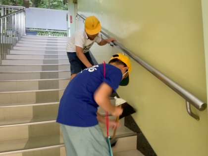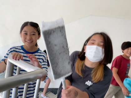 部屋や使った場所をみんなでぴかぴかにしました。来た時よりも美しくできたかな?