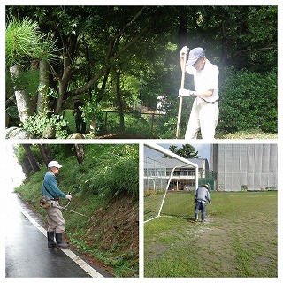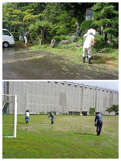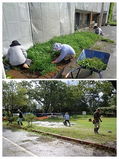 今日は、応援団の除草作業がありました。早朝から、応援団の皆さんがお越しくださり、花壇や学校周りの草刈りをしたり、雑草防止のにがりを運動場に散布したりしてくださいました。途中、大雨が降り、その後は太陽が照りつけて息苦しいほどの蒸し暑さでしたが、予定時間を超えてまで作業をしてくださいました。最後に、全校出校日で登校していたすずっ子たちから、元気な声で「ありがとうございました!」の感謝をお伝えしました。応援団の皆様、本当にありがとうございました!!