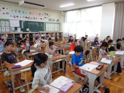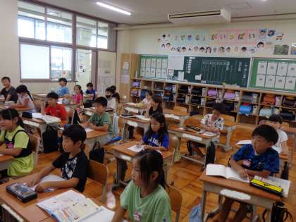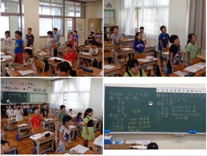 2学期の算数の学習が始まりました。はじめは、百の位へ繰り上がる筆算の学習です。1学期の足し算の筆算を思い出しながら、みんなで声を出して解き方を練習することができました。