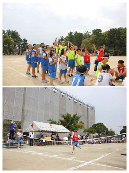 女子紅白対抗リレーです。最後まで諦めずバトンをつなぎ,精一杯走ることができました。