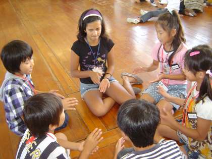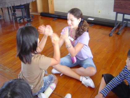 アメジャリ校の友達と一緒に遊んだよ! 公開日 2010/10/06 更新日 2010/09/30 4 年 初めはちょっぴり緊張していた子どもたちもすぐに仲良くなり、「なべなべ」や「かごめかごめ」「はないちもんめ」などのわらべ歌遊びを一緒に楽しみました。