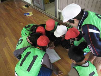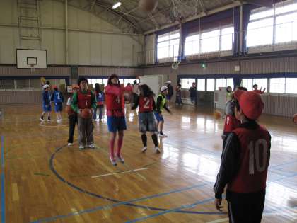 体育の授業では、バスケットボールを行っています。バスケ部の子をミニ先生として、各チームに分かれて練習を行っています。ドリブル、シュートなど基本的な技をマスターし、半面を使ってミニゲームも取り入れています。最初に比べると、動きもずいぶん良くなり、チームのまとまりを感じます。