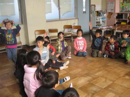 12月19日(金)クラスみんなで、お楽しみ会をしました。ハンカチ落とし、いす取りゲーム、宝探しをしました。1時間は、あっというまに終わってしまいました。「たのしいことは、はやいんだね。」子どもたちの感想でした。