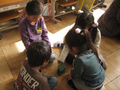 1月16日(金)生活科で、昔のあそびを体験しました。授業を見に来てくださったおうちの方とも一緒に、けん玉、めんこ、だるま落としをしました。次の生活科でも、昔のあそびを体験します。「めんこは、厚いめんこが強いね。」けん玉も上達しました。天気が悪く、外に遊びにいけないので、大放課にはみんなで、ぼうずめくりやかたかなかるたでたのしんでいます。