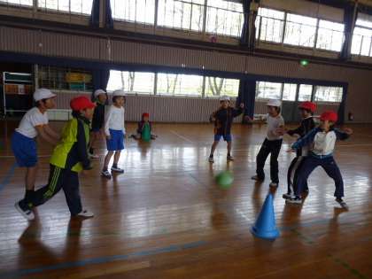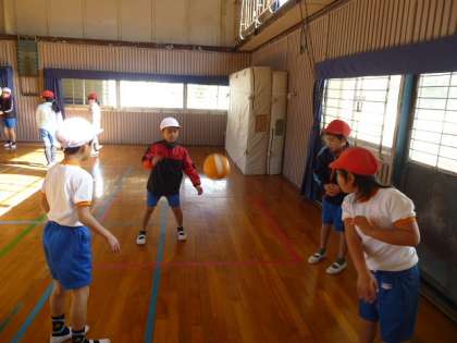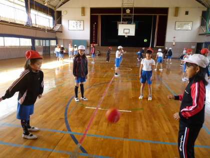 ご存じですか?簡単に説明すると、ドイツ生まれで、自陣に拳でボールをバウンドさせて味方にパスをしたり、相手コートに返したりするネット型ゲームです。高学年になるとソフトバレーボールへとつながる学習になります。