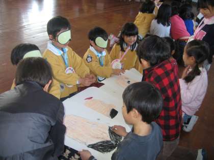 2月5日(木)新入生の体験入学がありました。1年生とこすもす・たんぽぽのクラスで7つのブースを作り、一緒に遊びました。遊ぶ前に、「一年生になったら」を歌い、「おにのパンツ」を踊りました。