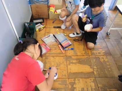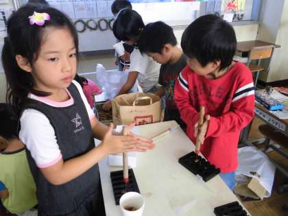 今日は1組2組一緒に木の実を使ったおもちゃを作りました。けん玉やどんぐりごまなど、工夫を凝らして作ることができました。作ったおもちゃで遊ぶのも楽しかったですね。