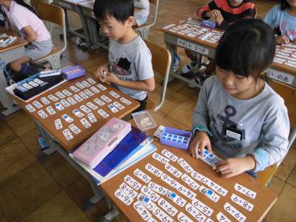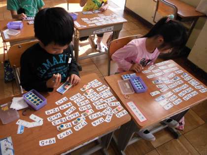 繰り上がりのあるたし算の演習を計算カードを使って行っています。宿題でご家庭でも計算カードの学習に取り組んでいただき、ありがとうございます。毎日継続して行えば、よりお子さんの力が伸びますので、引き続き取り組みをお願いいたします。