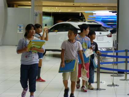 まず初めに,高岡工場で自動車を組み立てていく工程を見学しました。残念ながら,撮影はNGだったので,写真はありませんが,どの子も熱心に作業の様子に見入っていました。