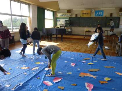 12月5日(土)学校行事 すずっこフェスティバルともちつき大会がありました。カラー班に分かれて、自分たちのカラー班のブースで当番をしたり、ペアのお兄さんやお姉さんと各班のブースやもちつき会場をまわったりします。