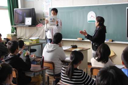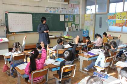 授業の様子から 公開日 2015/12/08 更新日 2015/12/08 校長室 12月8日(火)の1時間目に、6年生がALTと英語の学習をしていました。時間を尋ねる学習で、生活時間を伝える方法を学んでいました。 1年生では、算数の文章題に取り組む姿が見られました。たし算かひき算か迷う問題に、みんな真剣に考えて手を挙げていました。 5年生では、社会の学習で、マングローブの林が産業の振興で減少している問題について、考えていました。