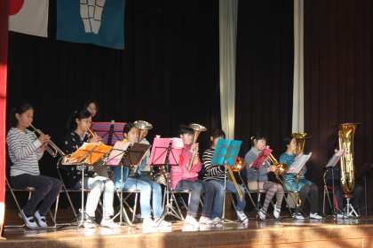 ミニ集会(音楽部発表) 公開日 2016/01/28 更新日 2016/01/28 校長室 1月28日(木)のミニ集会では、音楽部の発表がありました。1月30日(土)に行われるアンサブルコンテストに向けて練習してきた成果を全校の前で披露しました。 当日もいい音を響かせて下さい。