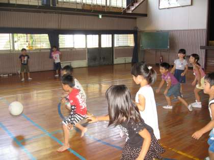 7月19日(火)お別れ会をしました。ドッジボールをやりました。体育でボール遊びをしたので,少し上手になりました。
