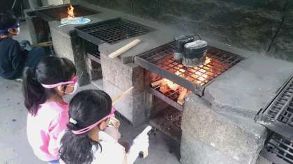 飯ごうすいさんをしました。 カレーライスをおいしくいただきました。