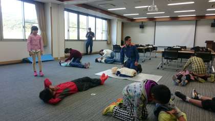 次に、救命救急法の実技訓練をしました。