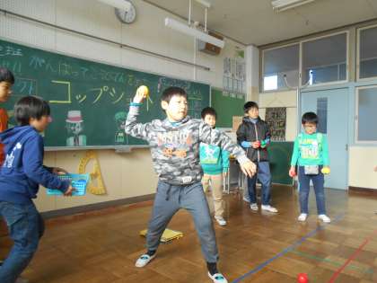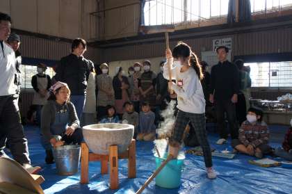 ペアの子や同じカラーの子たちと協力しながら、コーナーを巡ったり、運営することができました。もちつきでは楽しみながら、おいしいもちを食べることができました。