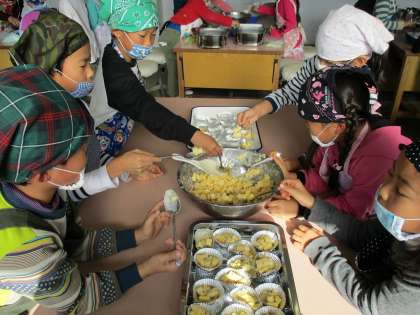 子どもたちはそのおいもを使って,おにまんじゅうを作りました。